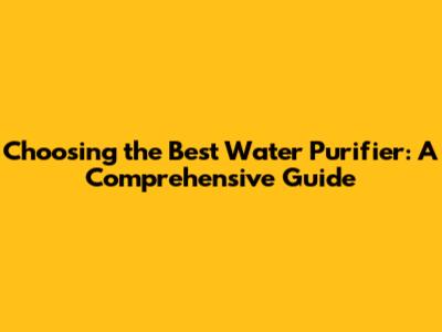 Choosing The Best Water Purifier: A Comprehensive Guide