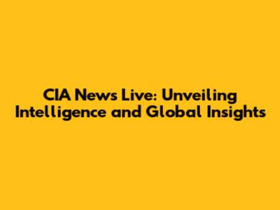 CIA News Live: Unveiling Intelligence And Global Insights
