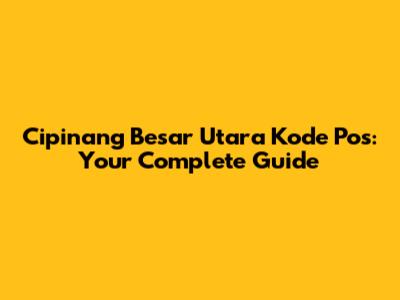 Decoding the Cipinang Besar Utara Kode Pos: Key Postal Codes