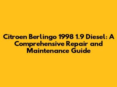Citroen Berlingo 1998 1.9 Diesel: Repair & Maintenance