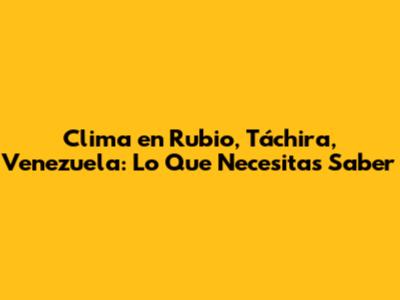 Clima En Rubio, Táchira, Venezuela: Lo Que Necesitas Saber
