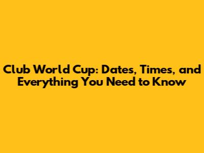Club World Cup: Dates, Times, And Everything You Need To Know