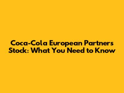 Coca-Cola European Partners Stock: What You Need To Know