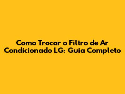Como Trocar O Filtro De Ar Condicionado LG: Guia Completo