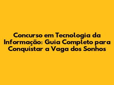 Concurso Em Tecnologia Da Informação: Guia Completo