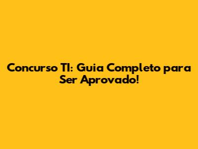 Concurso TI: Guia Completo Para Ser Aprovado!