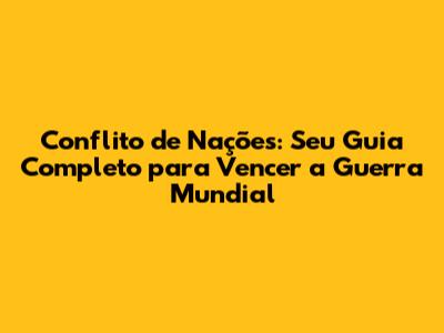 Conflito De Nações: Seu Guia Completo Para Vencer A Guerra Mundial