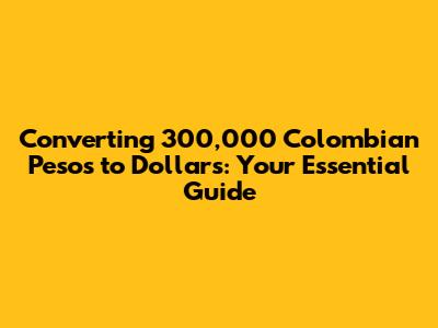 Hey guys! So, you're looking to convert 300,000 Colombian pesos (COP) into US dollars (USD)? Awesome! Understanding how to do this correctly is super important, whether you're planning a trip, managing finances, or just curious about the exchange rate. This guide is designed to walk you through everything you need to know, from the current exchange rates to the best methods for converting your money. Let's dive in and make sure you get the most out of your pesos!