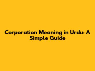 Corporation Meaning In Urdu: A Simple Guide