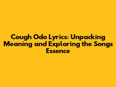 Cough Odo Lyrics: A Deep Dive Into Meaning & Analysis