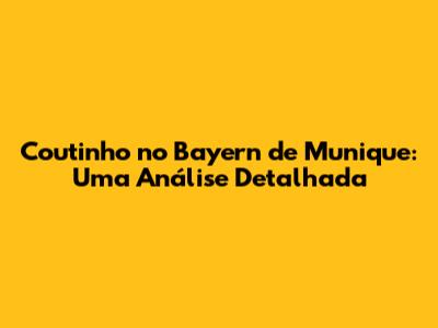 Coutinho No Bayern: A Jornada Inesquecível