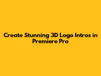 Elevate Your Brand: Unleash the Power of 3D Logo Intros with Premiere Pro