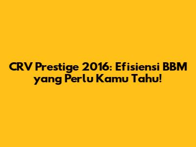 Memahami Konsumsi BBM CRV Prestige 2016: Apa yang Perlu Kamu Tahu?