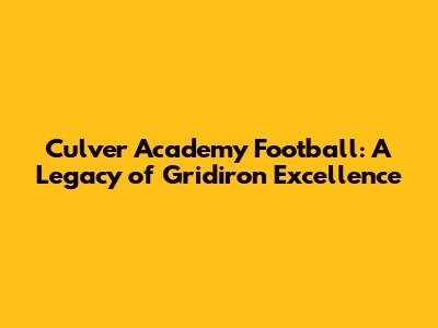 Hey sports fanatics! Let's dive into the exciting world of Culver Academy football. This isn't just any high school football program, folks; we're talking about a legacy, a tradition, and a breeding ground for future leaders both on and off the field. Culver Academy, nestled on the shores of Lake Maxinkuckee in Indiana, is renowned not only for its rigorous academic curriculum but also for its exceptional athletic programs. Football at Culver Academy holds a special place, weaving together history, competition, and the development of character. From its humble beginnings to its current status as a highly respected program, Culver football has consistently demonstrated excellence, shaping young men into well-rounded individuals. This article is your all-access pass to the world of Culver football, exploring its rich history, the current teams, the passionate traditions, and what makes this program a standout in the realm of prep school athletics. We’ll look at the coaches, the players, and the community that contribute to making Culver Academy football such a compelling story. Buckle up, because we're about to explore the heart and soul of Culver's gridiron glory! It's a tale of hard work, dedication, and the relentless pursuit of excellence, all wrapped up in the iconic Culver spirit.