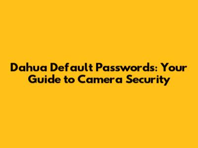 Dahua Default Passwords: Your Guide To Camera Security