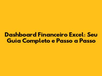 Dashboard Financeiro Excel: Seu Guia Completo E Passo A Passo