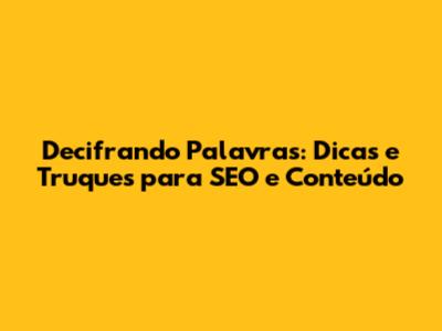 Decifrando Palavras: Dicas E Truques Para SEO E Conteúdo