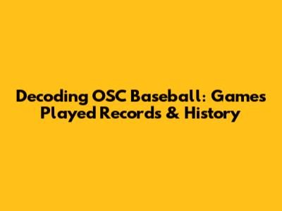 Decoding OSC Baseball: Games Played Records & History