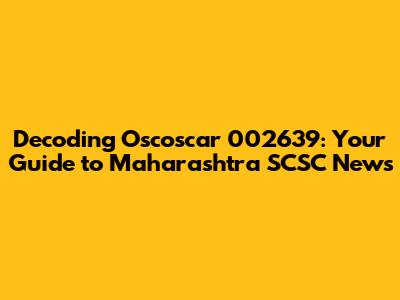 Decoding Oscoscar 002639: Your Guide To Maharashtra SCSC News