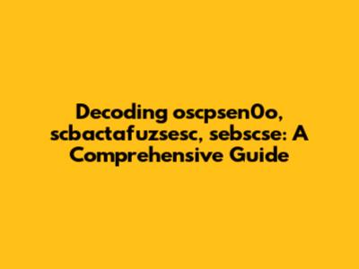 Decoding Oscpsen0o, Scbactafuzsesc, Sebscse: A Comprehensive Guide