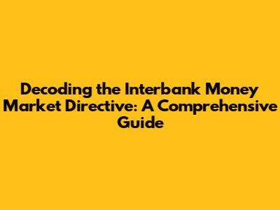 Decoding The Interbank Money Market Directive: A Comprehensive Guide