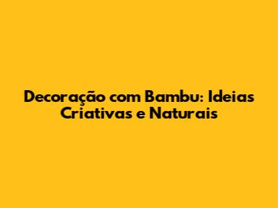 Criatividade sem Limites: DIY com Bambu