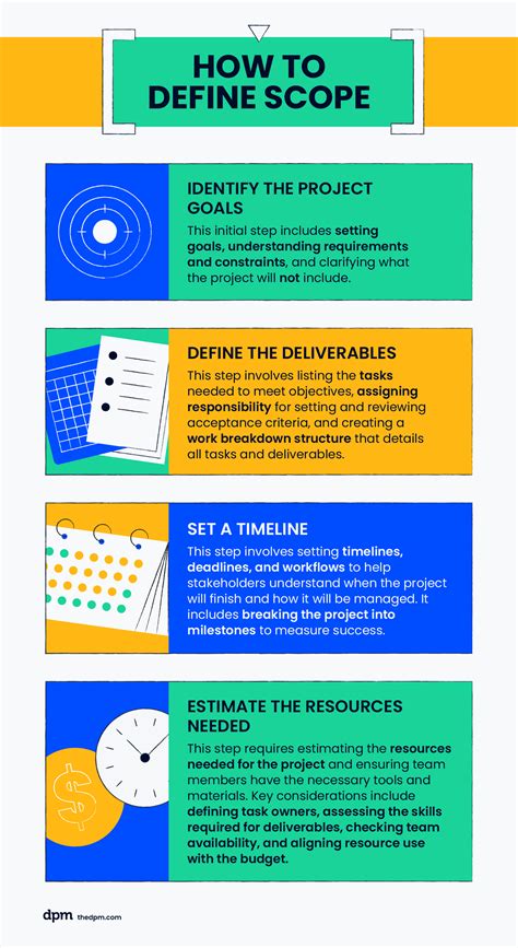 Now that we’ve nailed the “why” , let’s talk about the “what” : the scope . The scope defines the boundaries of your project. It outlines what’s included and, just as importantly, what’s not included. Think of it as the perimeter of your project, the area within which you’ll operate. Defining the scope is critical because it helps manage expectations, prevents scope creep (that’s when the project expands beyond its original boundaries), and ensures everyone is on the same page. Without a well-defined scope, you risk running into all sorts of problems. Your project might become bloated, taking longer and costing more than expected. The team might become confused, not knowing what they’re supposed to be working on. And your stakeholders might become frustrated because the project isn’t delivering what they originally expected. To define your scope, you need to identify the project’s deliverables , the specific products or services you’ll be providing. You also need to define the tasks required to produce those deliverables. This involves breaking down the project into smaller, manageable pieces, like creating a work breakdown structure (WBS). The WBS is a hierarchical decomposition of the project’s scope, organizing all the work to be done. It’s a fantastic tool for visualizing the scope and ensuring nothing is missed. You should also identify any constraints or limitations that might affect your project, such as budget, time, or resources. And don’t forget to outline any assumptions you’re making, such as assuming a certain level of technical expertise or the availability of specific data. Finally, you should document all of this in a scope statement, a formal document that clearly defines the project’s boundaries. This statement should be reviewed and agreed upon by all stakeholders to ensure everyone is on the same page. Remember, a well-defined scope acts as your project’s roadmap, guiding you and your team toward success. It helps you stay focused, manage expectations, and avoid the pitfalls of scope creep. So, take the time to define your scope carefully, and you’ll be well on your way to delivering a successful project. Be very specific about what is included in the project, and what is excluded. This will help you manage expectations and avoid any surprises down the road. Keep in mind that the scope can sometimes change as the project progresses, but any changes should be carefully managed and documented to ensure everyone remains aligned. Because the scope is so critical, it’s worth the time to do it right from the start.