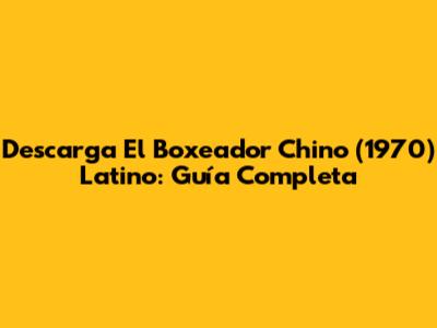 Descarga 'El Boxeador Chino' (1970) Latino: Guía Completa