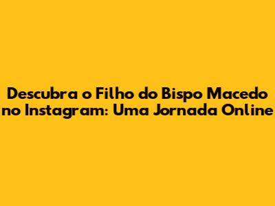 Se você está interessado em seguir o filho do Bispo Macedo no Instagram, aqui estão algumas dicas e informações úteis.