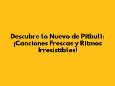 Descubre Lo Nuevo De Pitbull: ¡Canciones Frescas Y Ritmos Irresistibles!