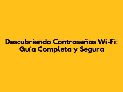 Descubriendo Contraseñas Wi-Fi: Guía Completa Y Segura