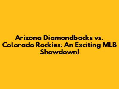 Diamondbacks Vs Rockies: An Exciting MLB Showdown!