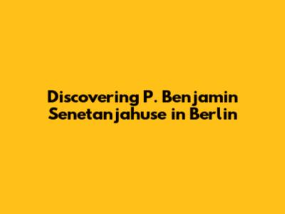 Discovering P. Benjamin Senetanjahuse In Berlin
