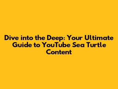 Dive Into The Deep: Your Ultimate Guide To YouTube Sea Turtle Content