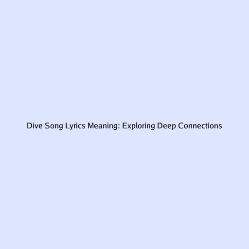 Dive Song Lyrics Meaning: Exploring Deep Connections