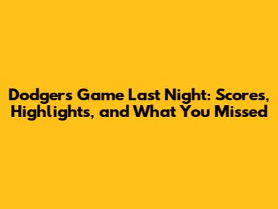 Dodgers Game Last Night: Scores, Highlights, And What You Missed