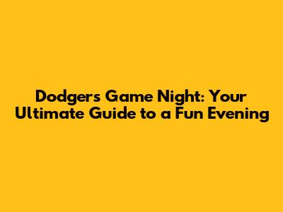 Dodgers Game Night: What You Need To Know