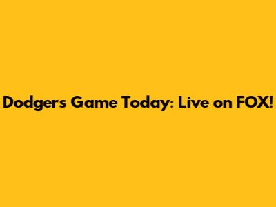 Dodgers Game Today: Live On FOX!