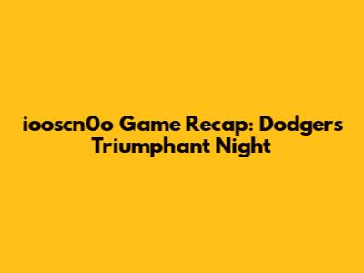 Dodgers' Thrilling Victory: Iooscn0o Game Recap