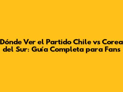 Dónde Ver El Partido Chile Vs Corea Del Sur: Guía Completa