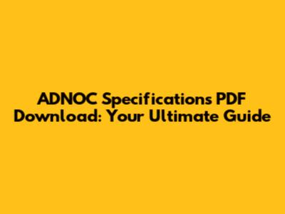 Download ADNOC Specifications PDF: Your Ultimate Guide