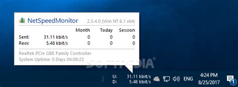 PSEnetSpeedMonitorSE, on the other hand, sits quietly in your system tray, displaying your real-time speeds without requiring any extra clicks or navigation. This is particularly useful for professionals who rely on a stable and fast internet connection for their work, such as video editors, graphic designers, and software developers. By having a constant visual indicator of their network performance, they can quickly identify and address any potential issues that might impact their productivity. For instance, if a video editor is uploading a large project to a cloud storage service, they can use PSEnetSpeedMonitorSE to monitor the upload speed and ensure that it remains consistent throughout the process. If the speed drops unexpectedly, they can investigate the cause and take corrective action, such as restarting their router or contacting their internet service provider.