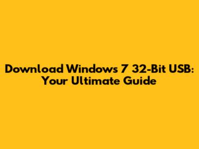 Download Windows 7 32-Bit USB: Your Guide