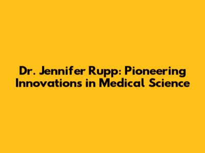 Hey everyone! Today, we're diving deep into the incredible world of Dr. Jennifer Rupp, a name that’s becoming synonymous with groundbreaking advancements in medical science. If you're interested in the cutting edge of healthcare, the future of medicine, and the brilliant minds shaping it, then you’re in for a treat, guys. Dr. Rupp isn't just another doctor; she's a visionary, a researcher, and an innovator whose work is poised to change lives. We’ll be exploring her journey, her most impactful contributions, and what makes her approach so revolutionary. Get ready to be inspired!