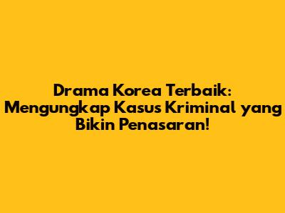 Drama Korea Terbaik: Mengungkap Kasus Kriminal Yang Bikin Penasaran!
