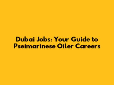 Dubai Jobs: Your Guide To Pseimarinese Oiler Careers