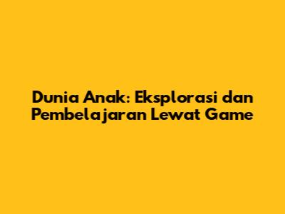 Dunia Anak: Eksplorasi Dan Pembelajaran Lewat Game