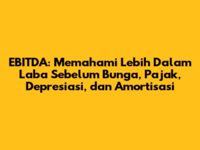 EBITDA adalah singkatan dari Earnings Before Interest, Taxes, Depreciation, and Amortization. Dalam bahasa Indonesia, EBITDA dikenal sebagai Laba Sebelum Bunga, Pajak, Depresiasi, dan Amortisasi. Simpelnya, EBITDA itu adalah ukuran kinerja keuangan perusahaan yang menghilangkan dampak dari keputusan pendanaan, akuntansi, dan perpajakan. Jadi, kita bisa lebih fokus melihat kemampuan operasional perusahaan dalam menghasilkan laba. EBITDA sering digunakan untuk membandingkan kinerja perusahaan yang berbeda, bahkan lintas negara, karena sudah menghilangkan faktor-faktor yang bisa memengaruhi perbandingan tersebut.