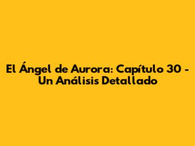 El Ángel De Aurora: Capítulo 30 Explicado
