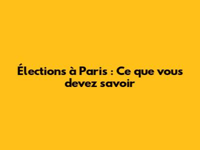 Élections À Paris : Ce Que Vous Devez Savoir